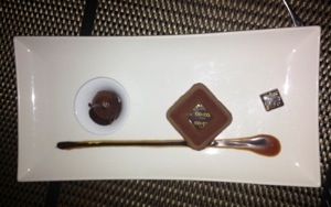 Here’s the “Chocolate Onyx,” a taste explosion of dark chocolate, salted caramel, and brownie with sides of dark chocolate sorbet and a toffee bonbon.